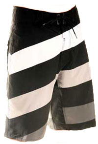 Solid diagonal stripe boardshort with screen print on the back pocket.