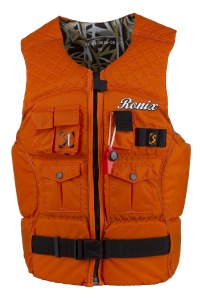 Remember that time you and your mates were on a week long wakeboard extravaganza? One of those camping nights, gazing at the stars, stirring some baked beans, sipping a cold one by the fire and your buddy blurted out. "You know what's wrong with wakeboarding - nobody has the sack to come out with a hunters orange/camo impact jacket with a field whistle, compass, shotgun shell holders and not a care in the world if it's approved by the Guard. I am envisioning a hybrid/neoprene jacket. None of that pseudo orange neoprene crap - that stuff's weak." Well you know what? We were there and we were listening, and tell your boy to quiet down with his epiphanies if he doesn't want us to knock him off.
