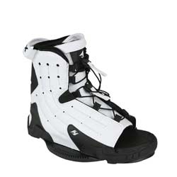 The Remix wakeboard binding is an all-new design for a very supportive but easy-to-get-into adjustable wakeboard boot. It has dual lace zones like much more expensive wakeboard boots, but the plushness you come to expect from an open-toe. The tongue has a neoprene stretch panel on the medial side where feet are thicker and need the adjustability, but the tongue is fixed on the lateral side where you need the support to land big airs. The new J-bar pads wrap around the ankle bones for a snug fit and eliminate heel lift.