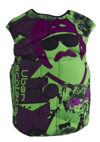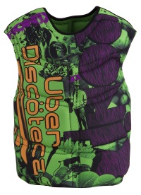 Last year, Bill got his feet wet and decided to jump into the fashion water parka world with his own signature no zip pull over design. The result was our best selling vest. Now featuring all 7 different Bill graphic ideas we came up with. Yes, if you look close, that is the Mr. Headroom making a slight appearance. Made from a thicker 3mm material with greater padding for those untimely bails. The Coast Guard might not have approved it, but our friend Bill from the urban discoteca gave his stamp of approval.