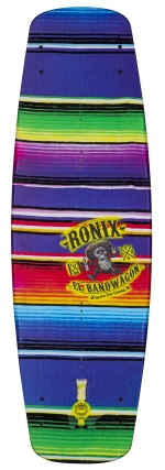 At first the bandwagon project started out to answer - how wide is too wide? Wakeboards have been roughly the same width for years. Then what happens if you crank the arc up on the tip and tail reducing the amount of contact with the water. The Ronix Bandwagon wakeboard is the first of its kind where it has nearly 10% more surface area than most other boards, but has nearly 10% less water contact compared to most. The result is a big board, with our largest sweet spot and added stability, but because so much of the wakeboard isn't touching the water it rides small with minimalist swing weight. Then our engineers threw in something they have been experimenting with over the past couple of seasons – camber. Instantly, Erik Ruck noticed how much more neutrally balanced he had become, anatomically correct, driving off the wake using his front foot as much as he would his back foot. Our team was freaking out over how much more of a solid drive and added hangtime they were getting – while boosting in so much more of a centrally stable position, and feeling the reduced swing weight of a much smaller board. Ride a wakeboard for the first time all over again - with a freeride twist.